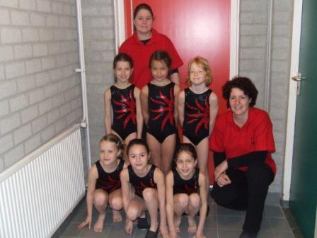 turnontmoeting en regiokampioenschappen in de Maas- en Niersbode! Op 20 april stonden de resultaten van de turnontmoeting en regiokampioenschappen in de Maas- en Niersbode met foto. Op de foto staan Pien Knops, Noor Teerling, Noor Kailola, Iris van Lieshout, Amely Verhasselt en Sara Lemmen met trainsters Ivet Heister en Lian Jansen tijdens de turnontmoeting op 27 maart in Roermond. |