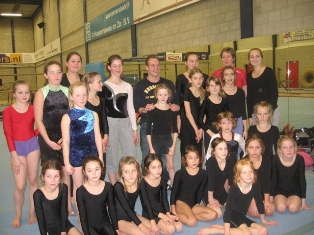 training in Den Bosch Op de zaterdag 14 januari en 11 februari hebben de turnsters van de B- en A-selectie 2,5 uur getraind in de turnhal van Flik-Flak in Den Bosch. Beide dagen is er weer zeer actief getraind op alle toestellen en trainingssituaties (diverse bruggen, diverse balken, pegases en diverse trampolines voor sprong en de verende vloer van 12 m x 12 m). Zo hebben beide trainingen wel een leuke herinnering voor zowel turnsters als ouders achtergelaten. Zo kwam op 14 januari, wereldkampioen ringen Yuri van Gelder, ineens de turnhal binnen gelopen! Hij was in de hal aan het wachten op journalisten van het tv-programma “De wereld draait door”, waar 1 van de ouders de moed bij elkaar geraapt heeft om te vragen of hij met de turnsters en trainsters (Lian, Ivet en Eelke, Lise was toen niet mee) op de foto wilde. Dat wilde hij wel! Inmiddels was de training afgelopen en ging de deur open en stapte tot grote verbazing van de turnsters en trainsters Yuri van Gelder binnenlopen voor een foto! Dit maakte de al zo leuke middag natuurlijk extra geslaagd! Op 11 februari hadden de ouders die mee zijn geweest een extraatje. Zij waren wel geïnteresseerd in het grote gymnastiekcomplex en kregen hierop een spontane uitgebreide rondleiding met vooral veel uitleg van beheerder Erwin. Ook deze middag vloog hierdoor voor iedereen weer voorbij. Op naar de wedstrijden! Als verrassing stond onderstaande foto met een stukje tekst op 25 januari in de 'Maas- en Niersbode' en op 4 februari in 'De Gelderlander'! |