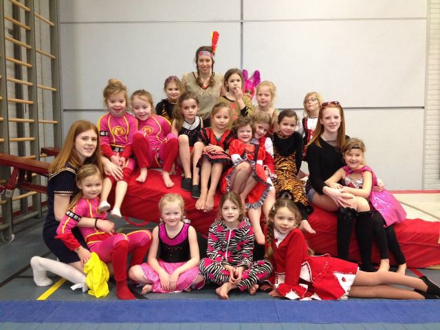 Carnaval Zaterdag 6 februari was het een groot carnavalsfeest tijdens de lessen van ODI Turnz. Het was een kleurrijk geheel van turnsters die verkleed waren. In de polonaise naar het volgende toestel. |