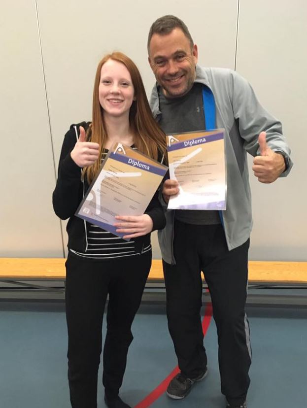 Geslaagd Angela en John Vandaag hebben Angela Schook en John Enning hun welverdiende diploma voor de niveau 1 assistentencursus in ontvangst mogen nemen. Hier hebben zij vorig seizoen hard voor gewerkt. Gefeliciteerd! John doet morgen zelfs alweer examen voor de niveau 2 cursus. |