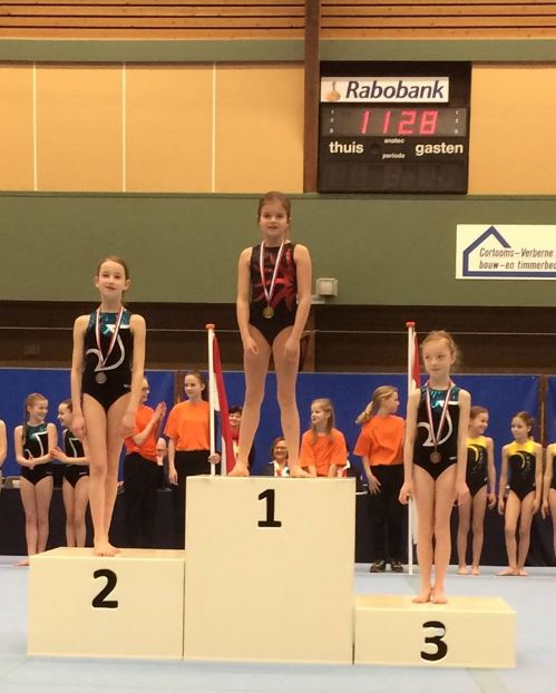 07-04-2018: Toestelfinales Eindhoven Toestelfinales D1, D2, 4e en 5e divisie in Eindhoven Vandaag stonden de toestelfinales op het programma. De meiden die zich hiervoor hadden geplaatst kwamen in wedstrijd 1 en 2 in actie. Uitslagen Sprong: Sara 7e, Lizzy 2e, Manou 4e, Jara 4e, Emma de Vries 6e. Brug: Amely 7e. Balk: Emma de Vries 8e. Vloer: Cato 10e, Emma Verberk 7e. Met een mooie 2e plek op sprong kreeg Lizzy een zilveren medaille omgehangen! Alle meiden kunnen trots zijn op de behaalde resultaten. Jullie horen toch maar mooi bij de besten van de regio per toestel! |