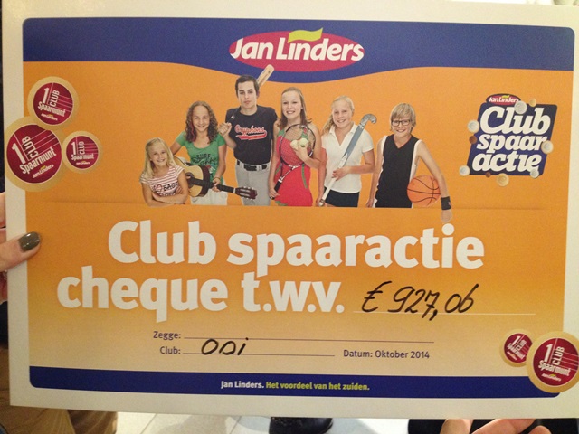 Op zaterdag 25 oktober 2014 vond om 11:00 uur de prijsuitreiking van de Jan Linders Clubspaaractie plaats. In het bijzijn van bestuur, leiding en een aantal leden van ODI Moves werd het gewonnen geldbedrag voor de clubkas bekend gemaakt. Met meer dan 18.000 munten kreeg ODI Moves een cheque met een bedrag van € 927,06 voor de vereniging! |