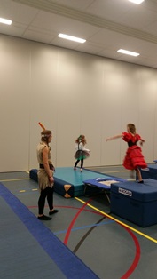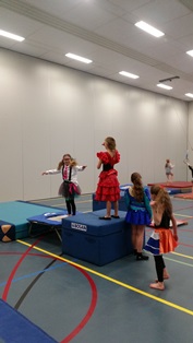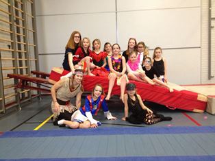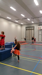 Zaterdag 6 februari was het een groot carnavalsfeest tijdens de lessen van ODI Turnz. Het was een kleurrijk geheel van turnsters die verkleed waren. In de polonaise naar het volgende toestel. |
